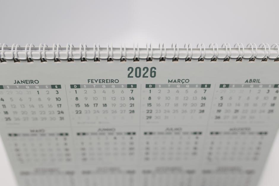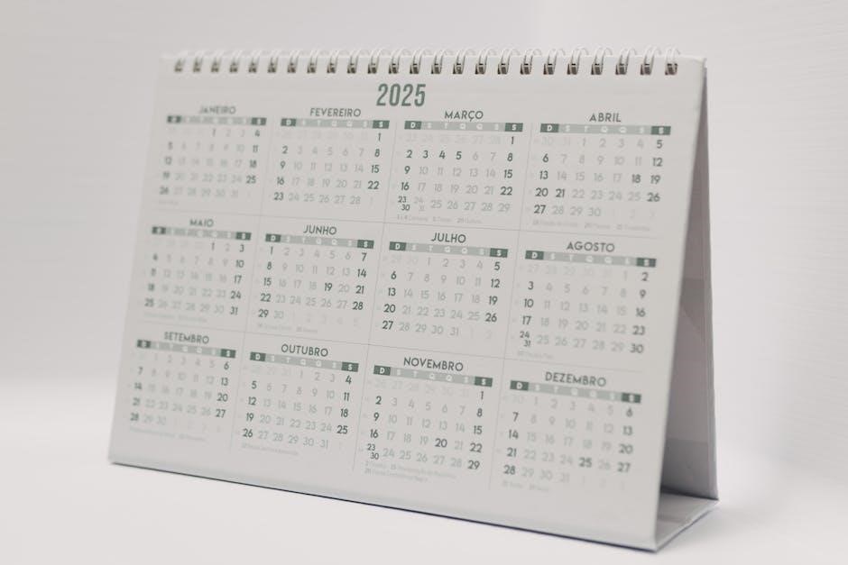 A minimalist and black-and-white design offers a clean and professional look, ideal for those who prefer simplicity․ These templates feature sleek layouts with ample white space, reducing visual clutter and focusing on essential details․ The monochromatic color scheme ensures versatility, making the calendar suitable for both personal and professional use․ Black-and-white designs are also cost-effective for printing, as they use less ink while maintaining readability․ Additionally, the minimalist aesthetic complements any workspace or home decor, providing a timeless and sophisticated appearance․ Perfect for users who value functionality and understated style, these designs ensure the calendar remains practical and visually appealing without unnecessary distractions․